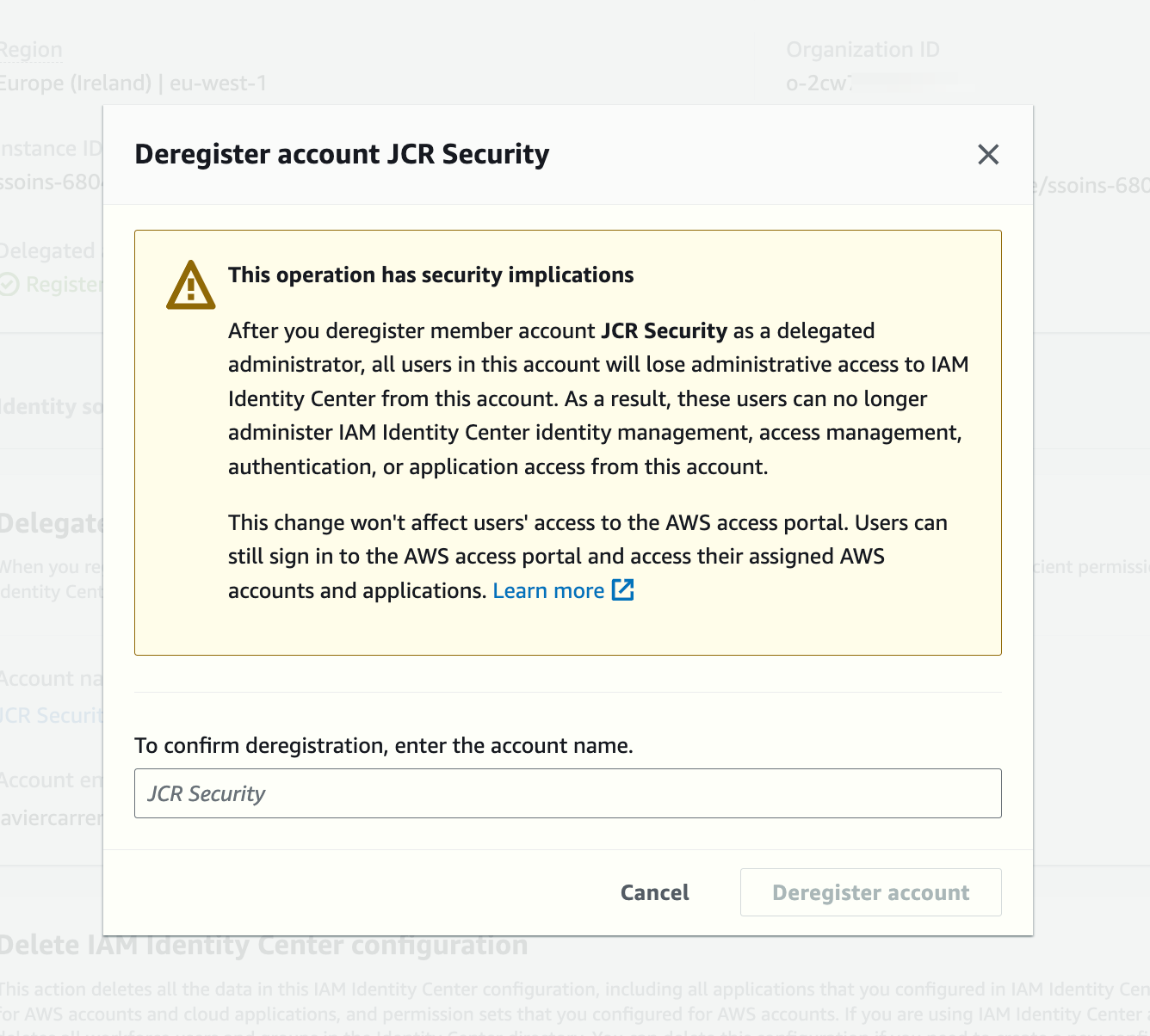 Deregistering the Delegated Administrator account